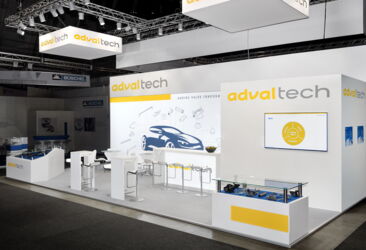 Nach der Übernahme der Fischer IMS durch das börsendotierte Schweizer Unternehmen Adval Tech, sollte das bewährte Messekonzept an die CI der neuen Eigner angepasst werden. Dank des Einsatzes unseres flexiblen und modularen Systems sowie durch die konsequente Verwendung unserer tauschbaren Grafikelemente, haben wir diese Aufgabe mit wenigen Änderungen an der Standbauarchitektur ganz im Sinne nachhaltiger Messebaugestaltung gelöst.