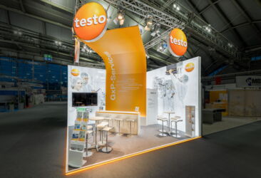 Auch auf kleinstem Raum lassen sich großartige Dinge präsentieren. Modular adaptierbares Standdesign für Testo Industrial Services. Unsere Designer haben diese individuelle Konstruktion mit der aufsehenerregenden Architektur im Hinblick auf die Anpassbarkeit an unterschiedlichste Raumsituationen entwickelt. Die Stände dieser Baureihe stechen seither aus der Masse der Standardkonstruktionen heraus und ziehen die Aufmerksamkeit der Besucher auf sich.