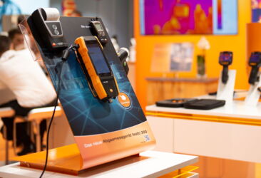 Messen sind nicht nur für Gespräche da – für viele Kunden sind sie auch die einfachste Möglichkeit, Produkte in die Hand zu nehmen und einen Eindruck von Qualität und Handhabung zu gewinnen. Diese Überlegung hat uns bei der Standkonzeption geleitet, die wir in enger Zusammenarbeit mit Testo entwickelt haben: Für den Messtechnik-Spezialisten haben wir zahlreiche Präsentationstische eingeplant und für die Ecken des Standes überlebensgroße Modelle aus Hartschau gefertigt, auf denen man die Funktionen testen konnten. Ein besonderer Anziehungspunkt war die „Anwenderwand“: Dort konnten die Besucher verdeckte Heiz- und Kühlschleifen mit den Wärmebildkameras von Testo suchen und finden.