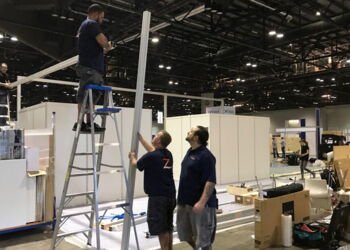 Und sogar Architekten neiden dem Messebauer seinen Job. Denn er hat in kürzester Zeit ein Bauwerk erschaffen und kann dabei sogar kreativ aus dem Vollen schöpfen mit modernen Materialien und natürlich sich baulich „austoben“. Das Größte für mich als Messebauer ist jedoch weltweit arbeiten zu dürfen. Diese Chance habe ich bei Müller Messebau in March-Hugstetten bei Freiburg bekommen. Ich hab mir fast ein Loch in den Bauch gefreut, als ich das Angebot bekam die Niederlassung und das Office in Apopka in der Nähe von Orlando Florida/USA als Branch Manager zu übernehmen. Die Einarbeitung und Vorbereitung auf das Messeleben in Amerika hat unser Unternehmensgründer Harald Müller übernommen. Eine echt harte Schule!