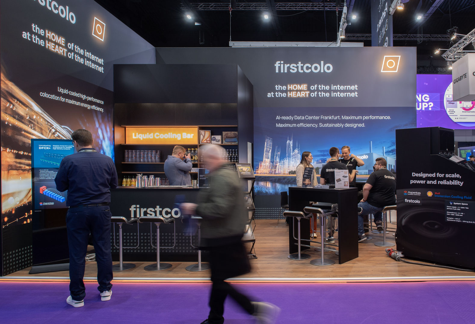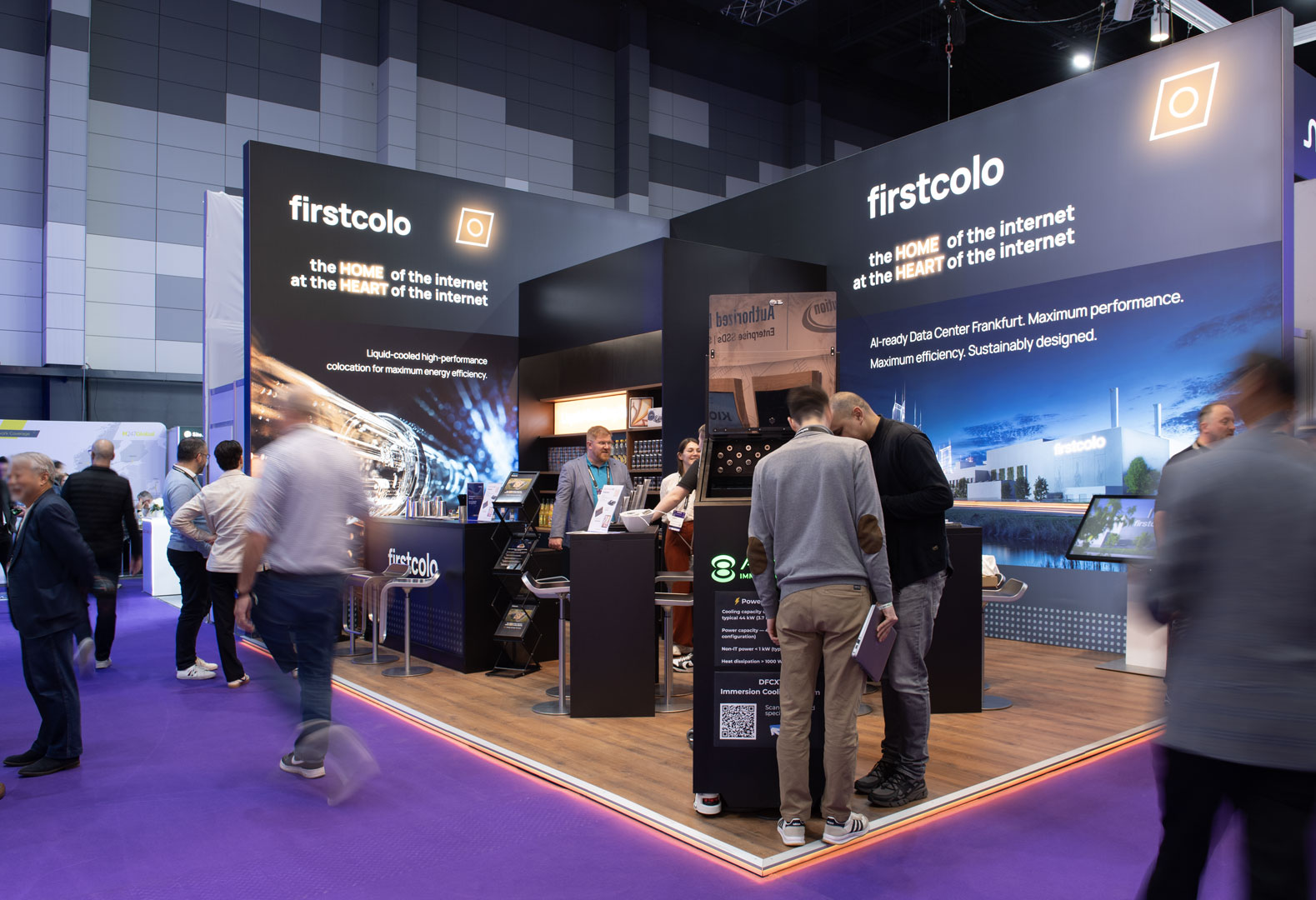 With this setup, the booth becomes one of the best meeting spots at the show and gives the firstcolo team two strong touchpoints for engaging with visitors.